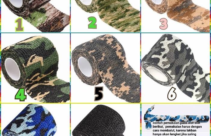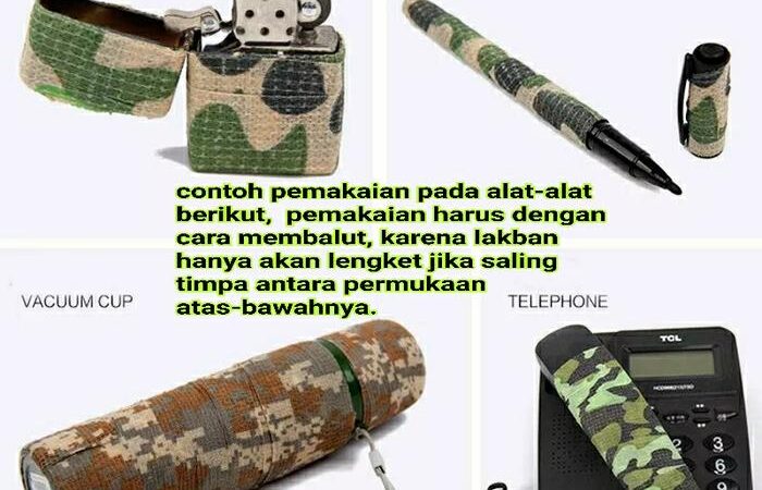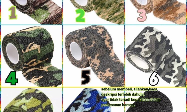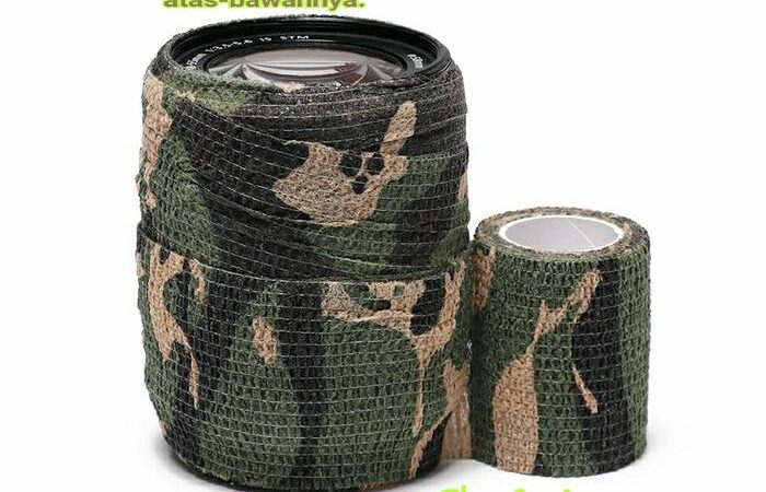 - Camo Tape: Lakban atau isolasi yang memiliki motif kamuflase (camo), biasanya digunakan untuk membungkus benda agar memiliki grip yang lebih baik dan tampilan yang disamarkan.