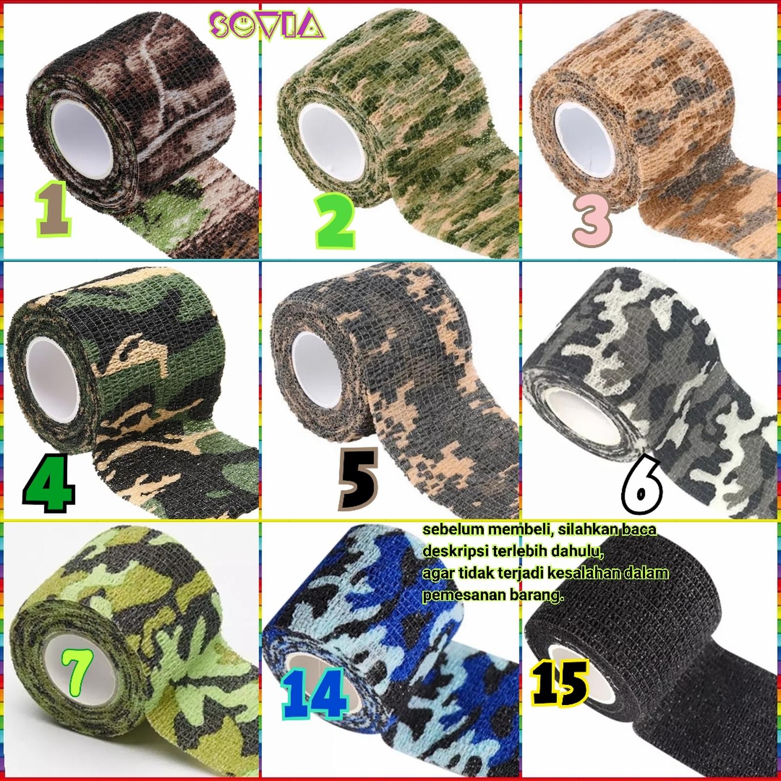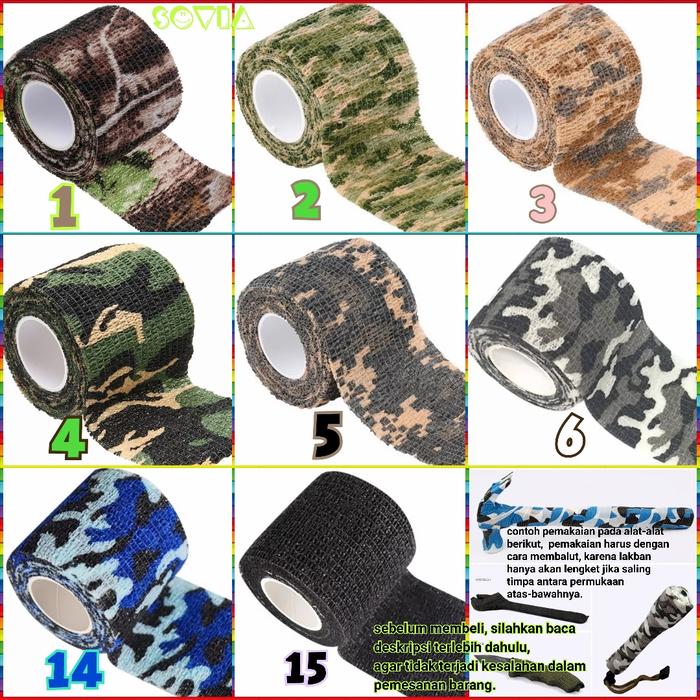 Tingkatkan tampilan dan fungsi peralatan Anda dengan Camo Tape berkualitas tinggi. Lakban kain elastis ini dirancang untuk membalut berbagai benda seperti alat tato, grip raket, peralatan fotografi (kamera, teropong), hingga perkakas (tang, palu) untuk memberikan daya cengkeram anti slip dan tampilan yang stylish.