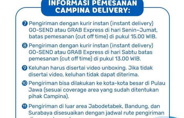 Pastikan ketersediaan stok sebelum memesan. Pengiriman dilakukan Senin-Sabtu, pukul 09.00-16.00 WIB. Pesanan diproses pada hari kerja berikutnya (H+1) untuk pembelian sebelum jam 16.00 di hari Senin-Jumat. Untuk pengiriman instan via GoSend/GrabExpress, batas pemesanan adalah jam 15.00 (Senin-Jumat) dan jam 13.00 (Sabtu). Layanan mencakup kota-kota besar di Pulau Jawa.