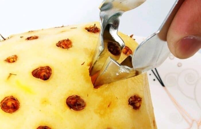- Tusuk capit ke mata nanas, putar beberapa kali, lalu tarik untuk melepaskannya.