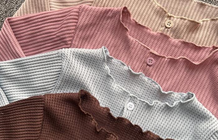 - Knit Wafer: Jenis rajutan yang memiliki tekstur berongga seperti wafer, membuatnya ringan, fleksibel, dan memiliki sirkulasi udara yang baik sehingga nyaman dipakai.