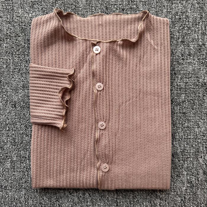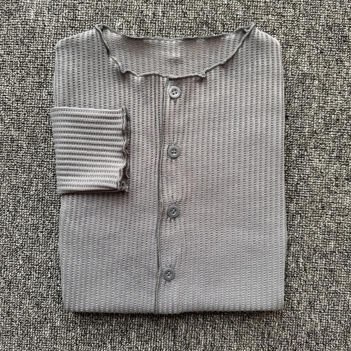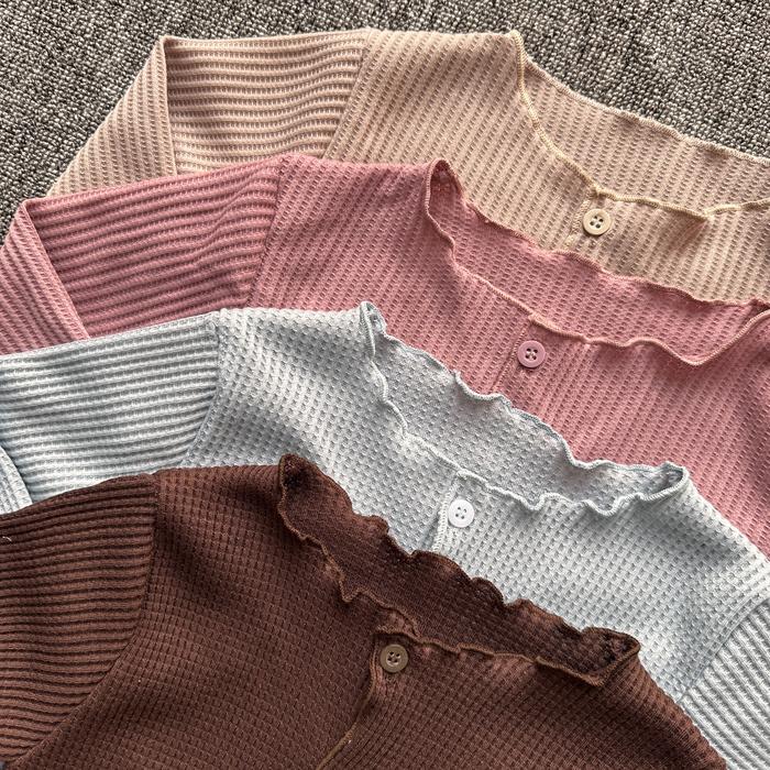 - Knit Wafer: Jenis rajutan yang memiliki tekstur berongga seperti wafer, membuatnya ringan, fleksibel, dan memiliki sirkulasi udara yang baik sehingga nyaman dipakai.