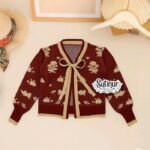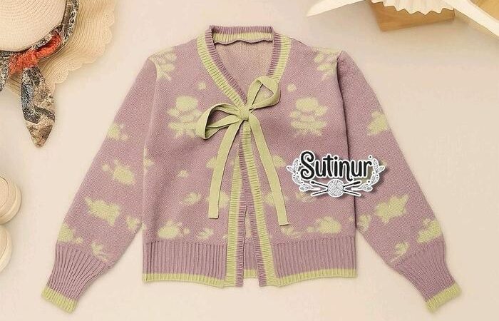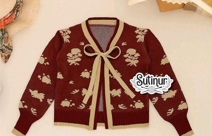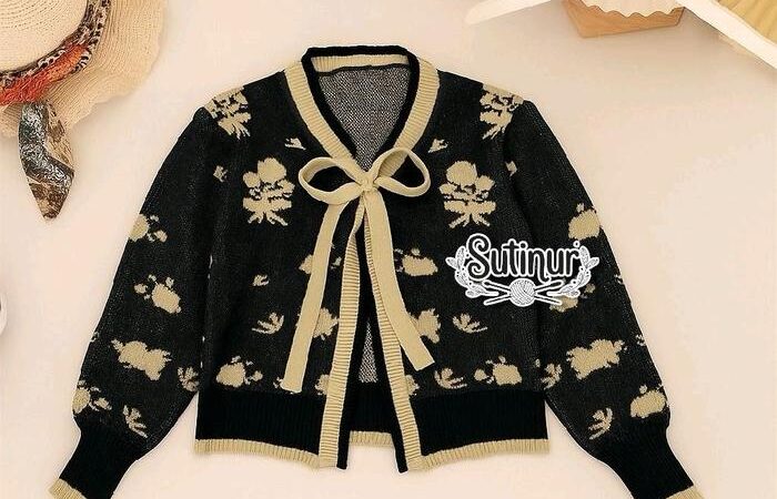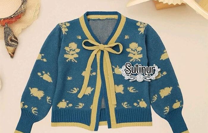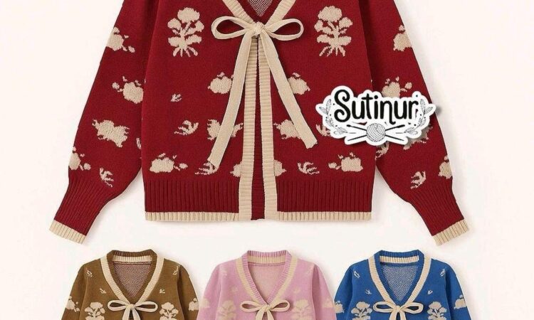 | Desain Cardigan Motif Bunga | Potongan klasik dengan jahitan rapi dan motif bunga yang cerah, menciptakan tampilan yang stylish dan bersih. |