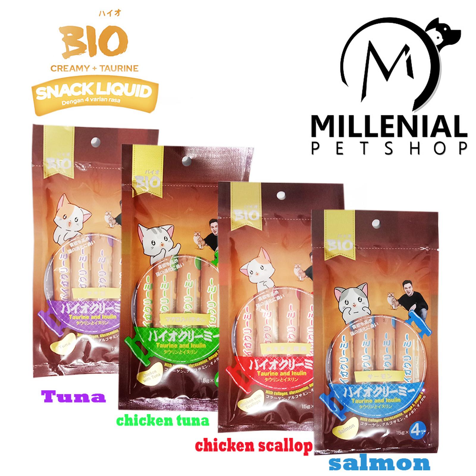 Berikan yang terbaik untuk kucing Anda dengan Bio Creamy! Snack lezat ini diformulasikan khusus dengan tambahan Taurine untuk menjaga kesehatan mata dan jantung. Teksturnya yang lembut dan creamy sangat disukai kucing, cocok sebagai reward pelatihan atau sekadar ungkapan sayang. Terbuat dari bahan pilihan seperti tuna, salmon, dan chicken asli yang kaya protein. Aman untuk dikonsumsi setiap hari dan bebas dari pewarna serta pengawet berbahaya. Dapatkan segera di Millennial Petshop!
