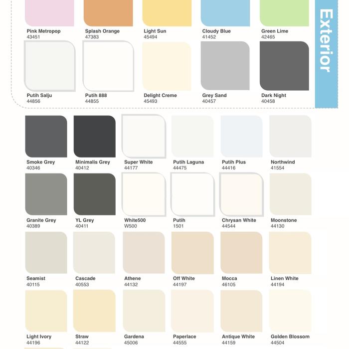 | Warna | Sistem tinting (tidak tersedia ready mix) |