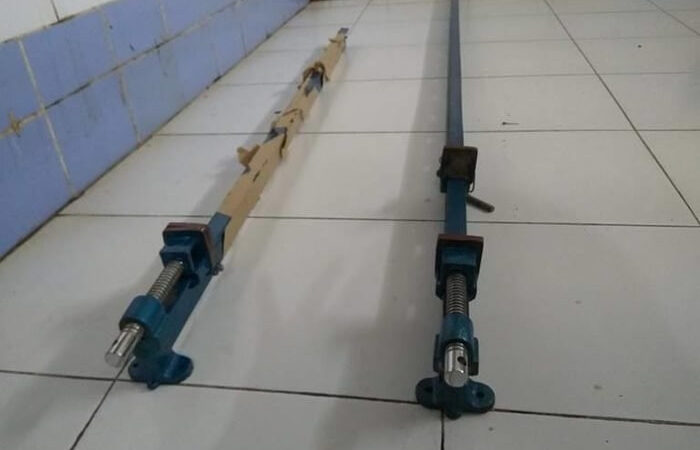 - T Bar Sash Clamp: Alat penjepit berbentuk "T" untuk menahan kayu/papan saat proses perekatan atau pemotongan.