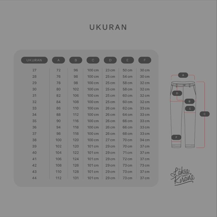 | Persyaratan Tukar Ukuran | Hanya untuk ukuran yang kekecilan. Label (gantung dan pinggang) harus masih terpasang lengkap. Tidak menggunakan fitur komplain. Ongkos kirim bolak-balik ditanggung pembeli. |