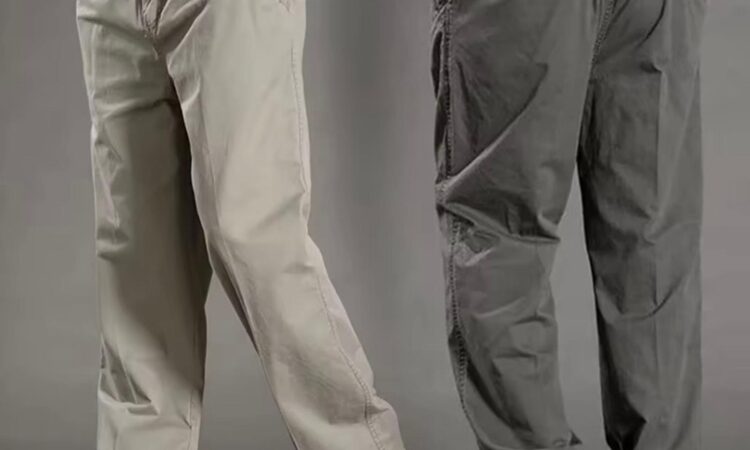 - Chinos: Jenis celana panjang pria yang berasal dari celana militer, biasanya terbuat dari katun twill. Berbeda dengan jeans, chinos memiliki tampilan yang lebih halus dan cocok untuk gaya kasual maupun semi-formal.