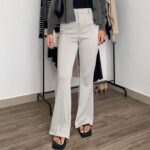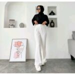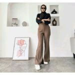 - High Waist (Tinggi Pinggang): Gaya celana dimana garis pinggangnya dipotong tinggi, biasanya hingga di atas atau tepat di pusar, untuk memberikan siluet yang lebih ramping dan panjang.