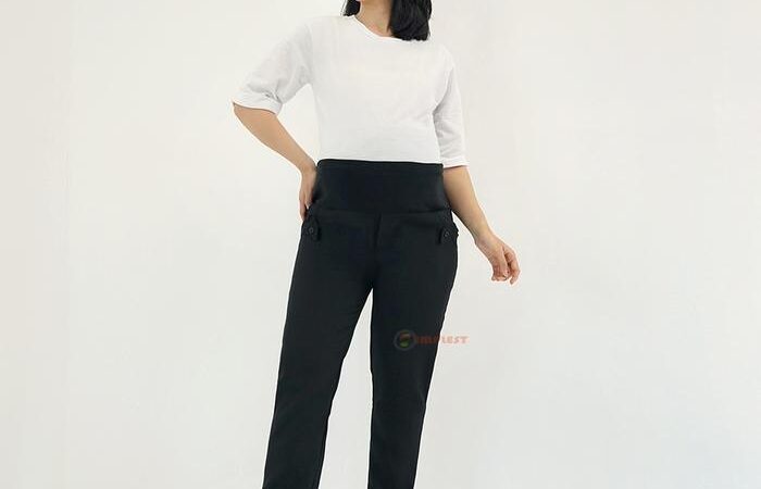 - Panel Kaos Adjustable: Bagian perut pada celana hamil yang terbuat dari bahan kaos elastis dan dilengkapi dengan karet serta kancing pengatur. Fitur ini memungkinkan celana dapat melebar secara fleksibel mengikuti pertumbuhan ukuran perut selama masa kehamilan.