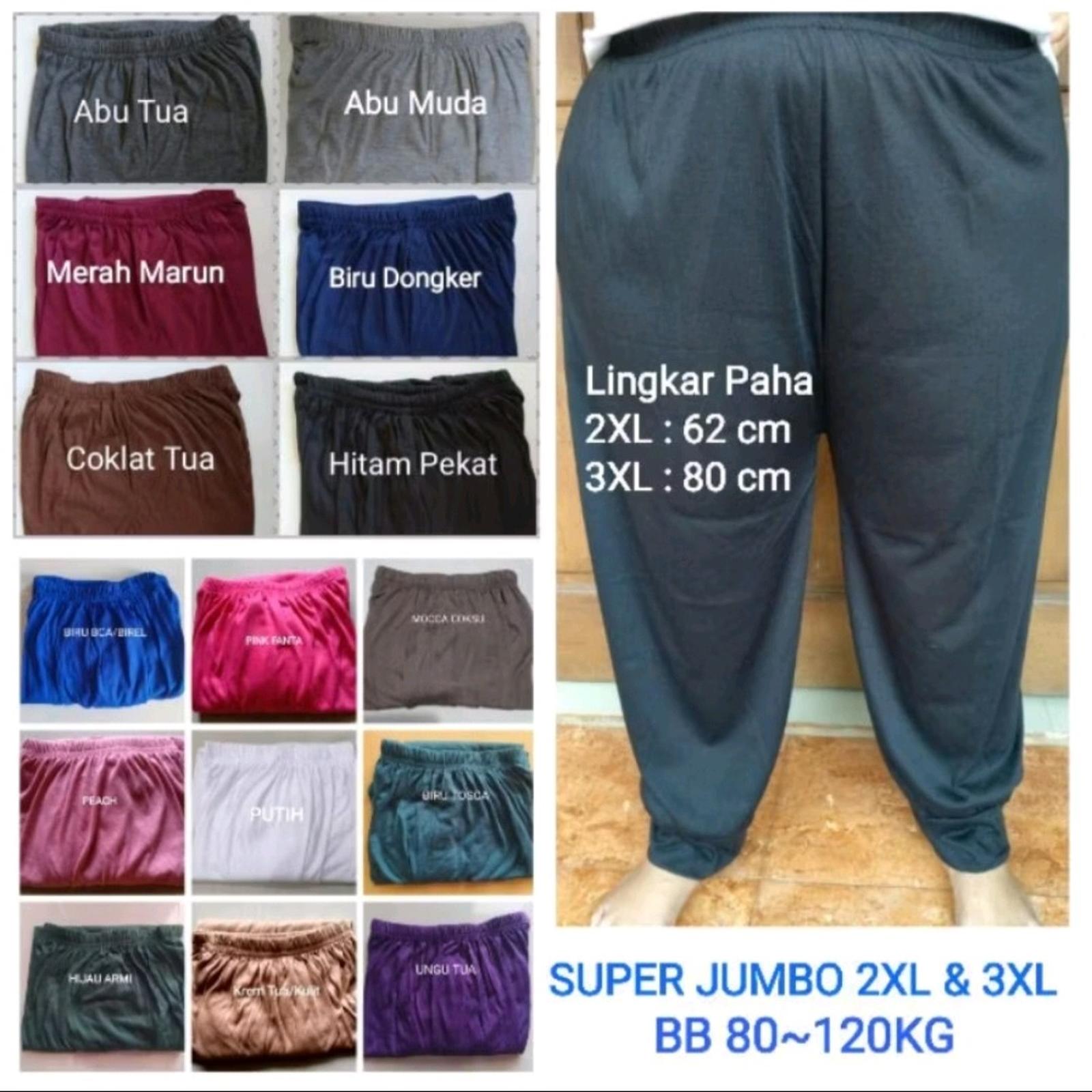 Temukan kenyamanan tanpa batas dengan Celana Harian Super Jumbo dan Jumbo kami. Dirancang khusus untuk memberikan kenyamanan maksimal, celana ini terbuat dari bahan kaos rayon premium yang sangat halus dan lembut. Bahan ini sangat adem sehingga nyaman dipakai sepanjang hari, bahkan sebagai daleman gamis sekalipun tanpa membuat gerah.