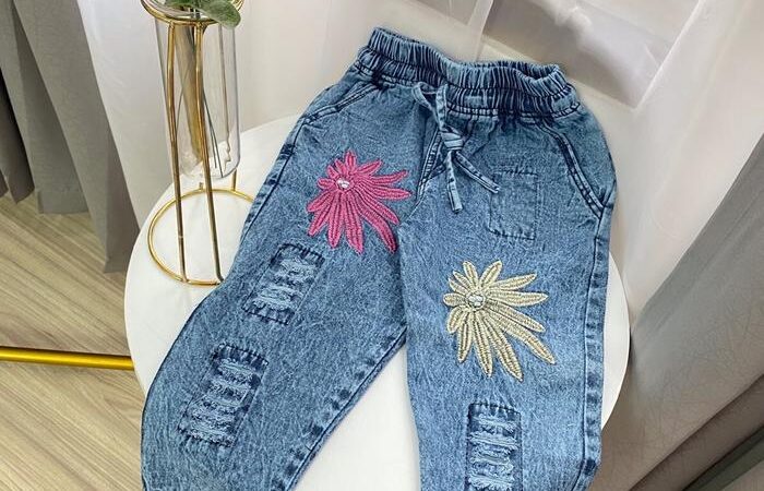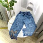 Tampilkan keceriaan si kecil dengan Celana Jeans Bordir Bunga yang cantik dan nyaman! Desain baggy yang trendy membuat anak bebas bergerak dan beraktivasi. Aksen bordir pita dan boneka bunga yang detail memberikan kesan manis dan unik, cocok untuk berbagai acara.