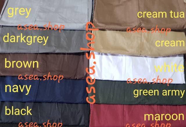 | Warna | Black, Navy, Brown, White, Grey, Cream, Dark Grey, Cream Tua (Mocca), Marron, Hijau Tua, Birel, Milo. |