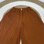 - Kulot: Siluet celana yang longgar dan melebar di bagian paha atau betis, sering kali menyerupai rok yang terbelah. Potongan ini sangat nyaman dan trendy.