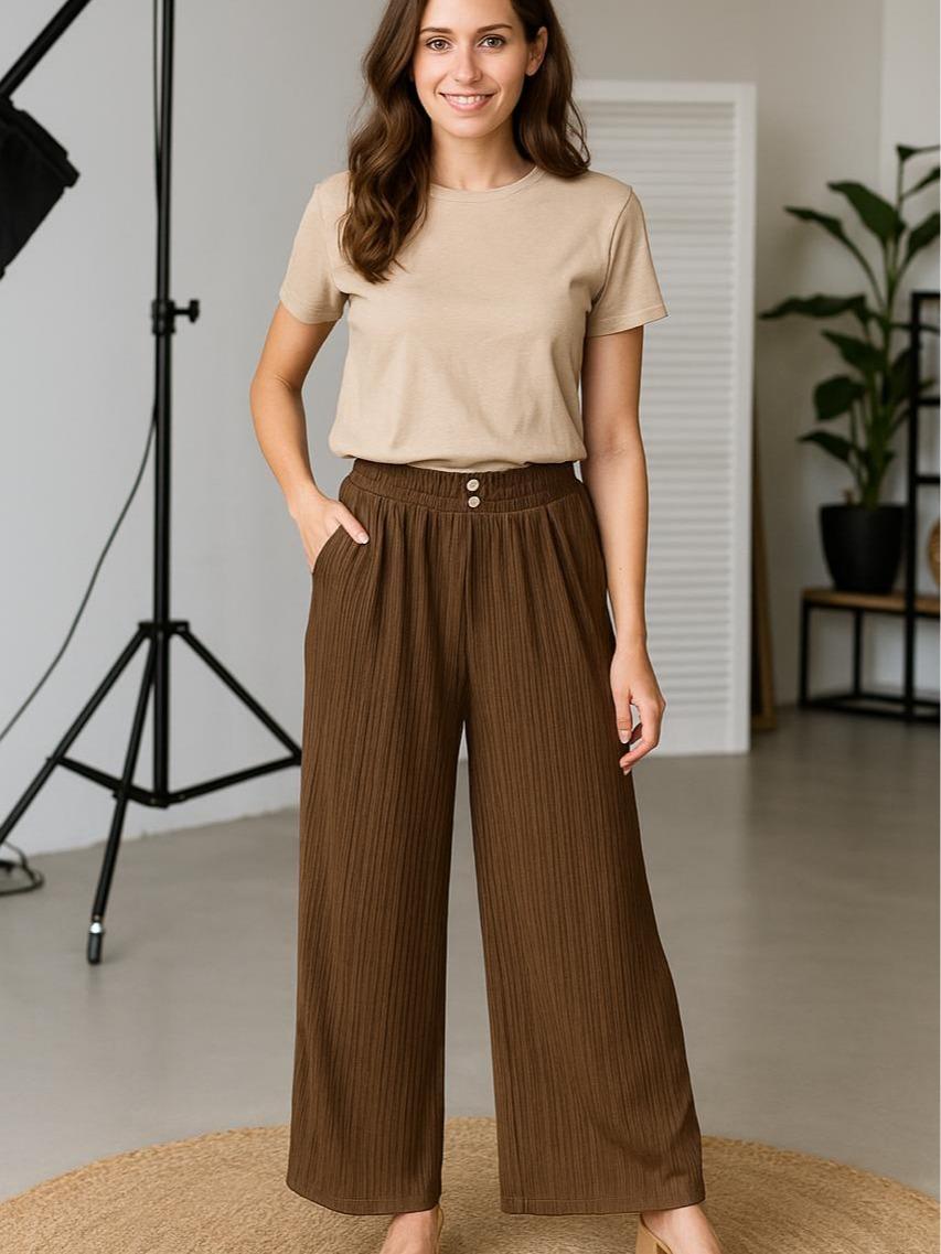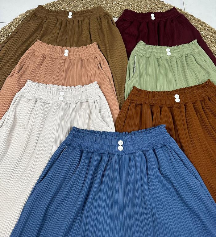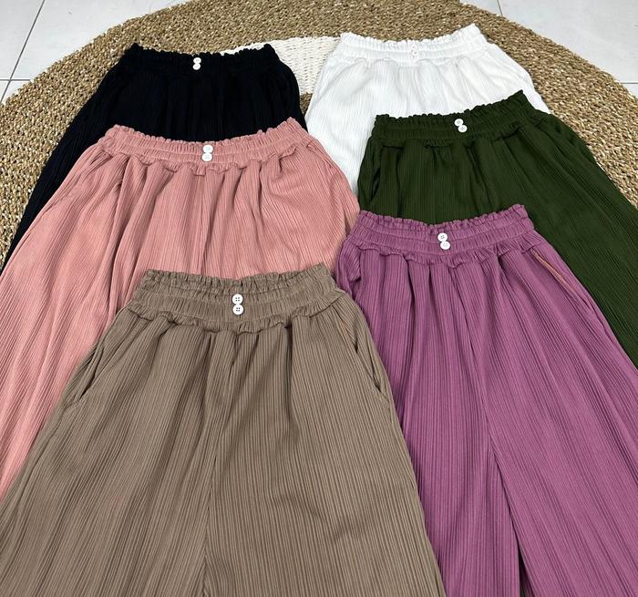 Tampil percaya diri dengan Celana Kulot Knit Condru kami! Dibuat dari bahan Knit Condru premium yang sangat melar, lembut, dan jatuh sempurna di tubuh. Desain kulot dengan kancing dua di bagian depan memberikan kesan modis dan elegan, cocok untuk berbagai acara baik formal maupun kasual.
