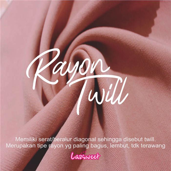 - Rayon Twill: Jenis kain rayon yang ditenun dengan pola twill (kepar), menghasilkan tekstur diagonal halus pada permukaan kain. Tekstur ini membuat kain lebih kuat, tebal, dan memiliki drape yang baik dibanding rayon biasa.