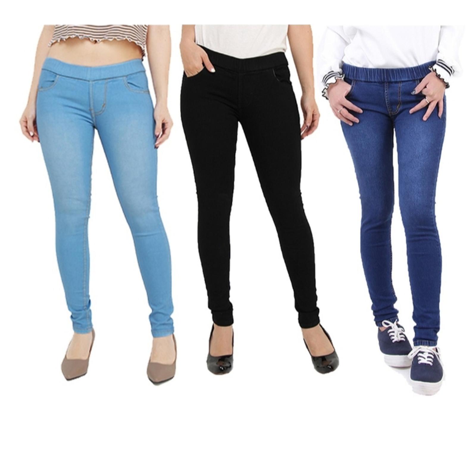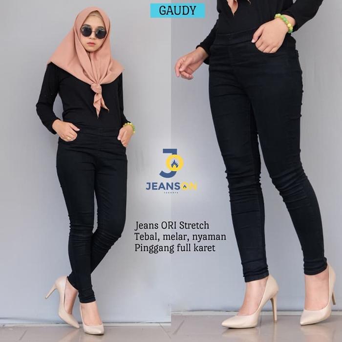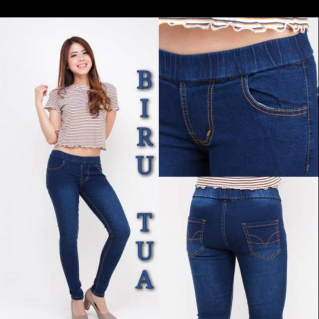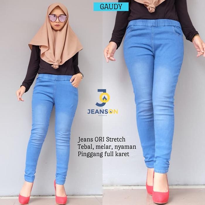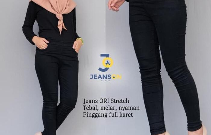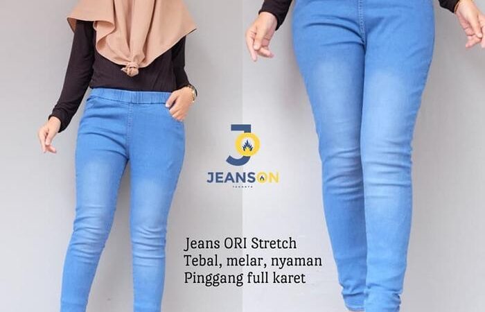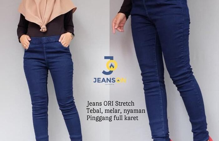 | Bahan | Soft jeans stretch tebal (melar, karet) |