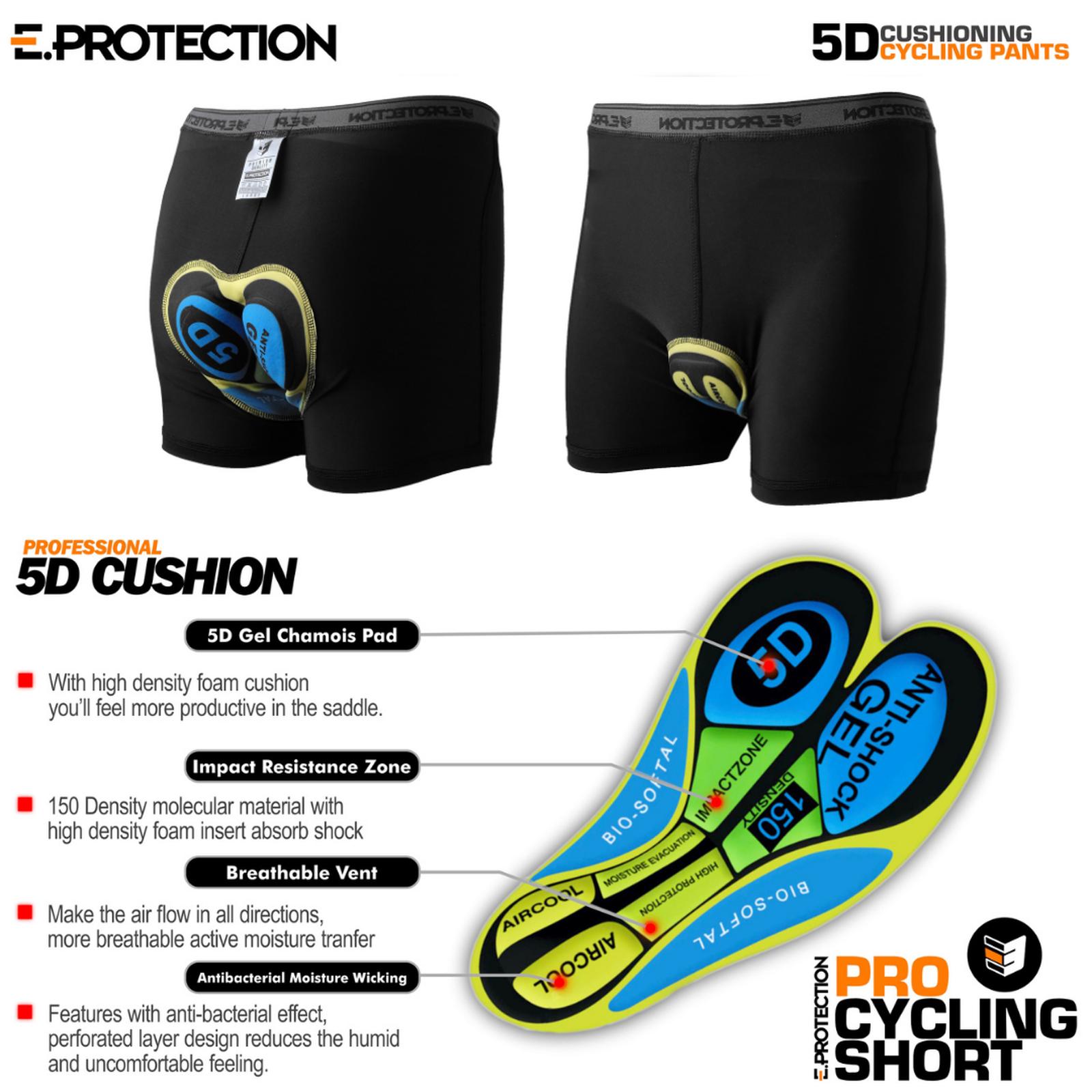 Dilengkapi dengan 5D Gel Chamois Pad yang menggunakan high density foam cushion, celana ini memberikan dukungan produktif di atas sadel. Zona Impact Resistance terbuat dari material molecular density 150 dan insert busa berdensitas tinggi untuk menyerap guncangan dengan maksimal. Fitur Breathable Vent memastikan sirkulasi udara optimal ke segala arah, menjaga tubuh tetap kering dan sejuk. Teknologi Anti-bacterial Moisture Wicking dengan efek antibakteri dan desain lapisan perforated mengurangi rasa lembap dan tidak nyaman, mencegah iritasi dan bau.