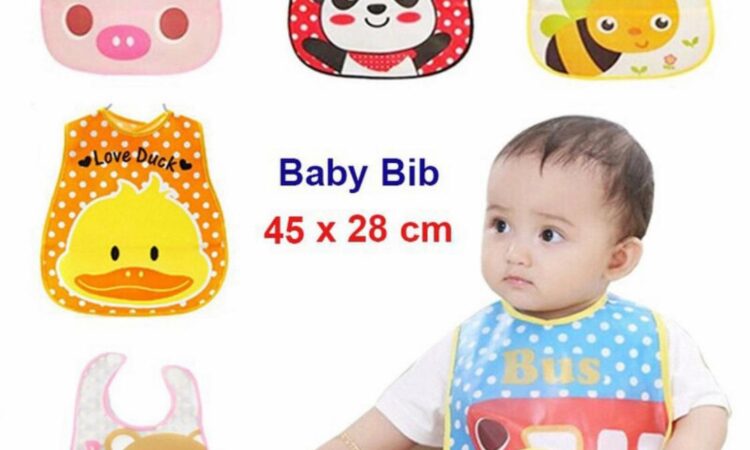 Material WaterproofTerbuat dari plastik berkualitas yang kedap air, mencegah noda makanan atau minuman meresap ke pakaian bayi.