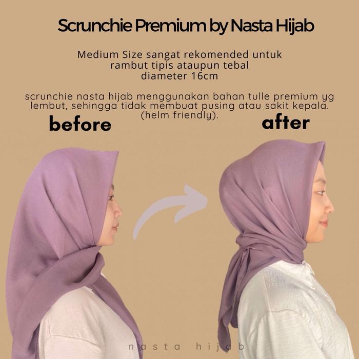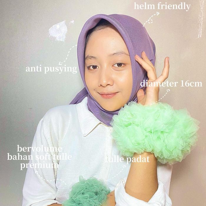 | Tips Penggunaan | Cubit dan regangkan scrunchie hingga mengembang sempurna untuk tampilan maksimal. |