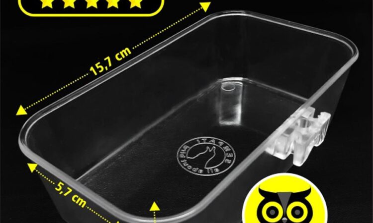 - Cepuk Mandi Kotak: Wadah berbahan akrilik berbentuk kotak untuk tempat mandi burung.