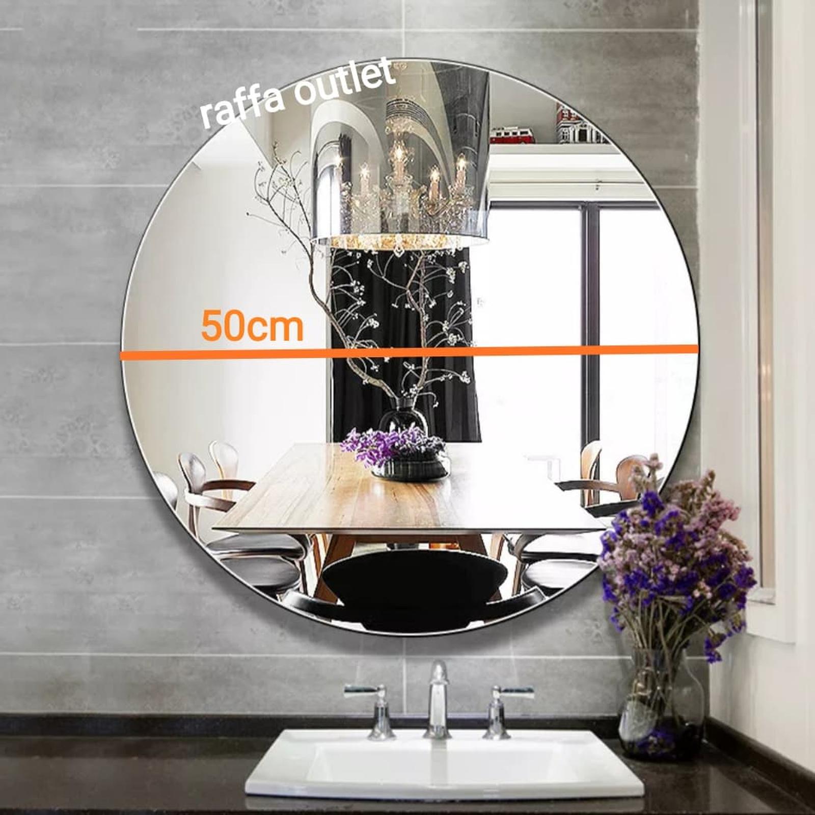 - Ukuran 50×50 cm (Full Lingkaran): Pilihan ideal untuk area wastafel yang luas.