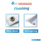 - Finishing Mata Ayam: Lubang-lubang kecil di sekeliling banner yang berfungsi untuk mengikat banner pada tiang atau media lainnya.