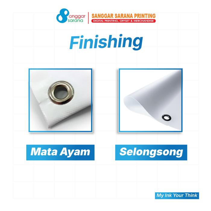 - Finishing Mata Ayam: Lubang-lubang kecil di sekeliling banner yang berfungsi untuk mengikat banner pada tiang atau media lainnya.