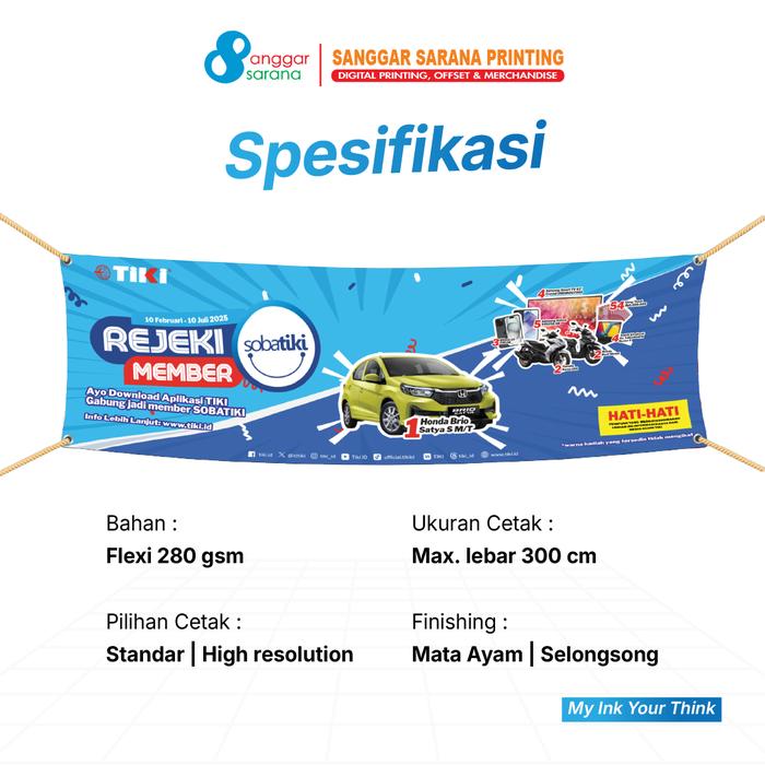 - Material Berkualitas: Bahan Flexi 280 GSM tahan cuaca untuk hasil yang awet.