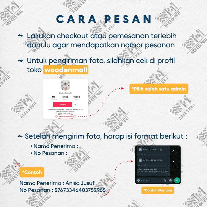 Proses pemesanan sangat mudah! Cukup kirim foto pilihan Anda via WhatsApp admin, dan kami yang akan mengerjakan semuanya. Kami akan menyesuaikan kecerahan dan resolusi foto secara gratis agar hasil cetak maksimal.