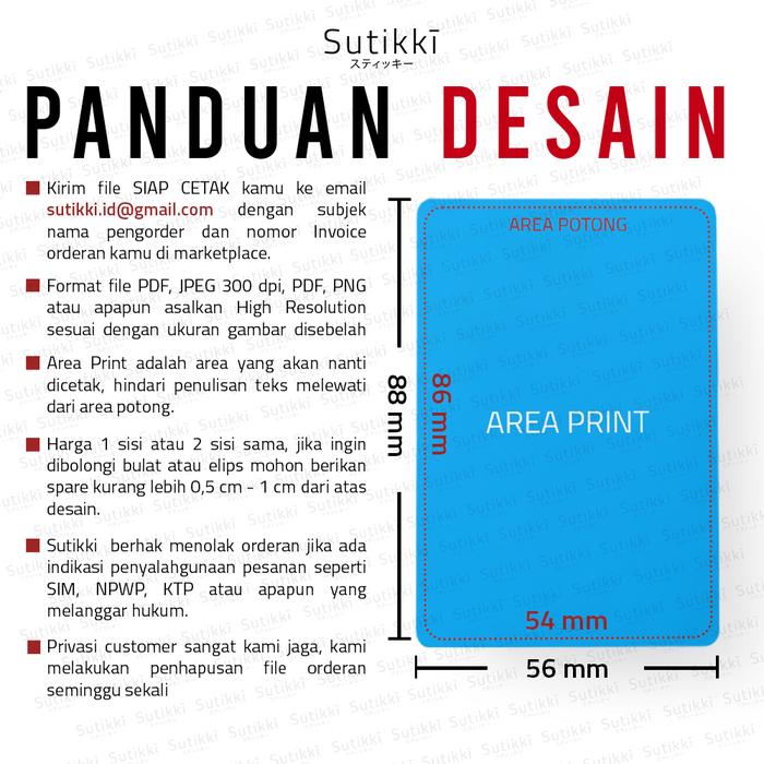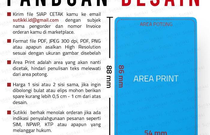- Jarak Aman (Safe Area): Area di dalam desain yang berisi semua elemen penting (seperti teks atau logo) dan harus dijaga agar tidak terpotong selama proses pemotongan fisik kartu.