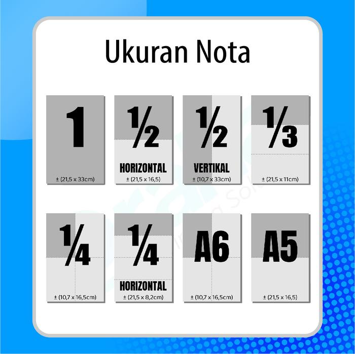- Ply: Jumlah lapisan kertas dalam satu set nota. 2ply berarti satu set terdiri dari 2 lembar kertas (asli dan 1 salinan), 3ply (asli dan 2 salinan), dan seterusnya.