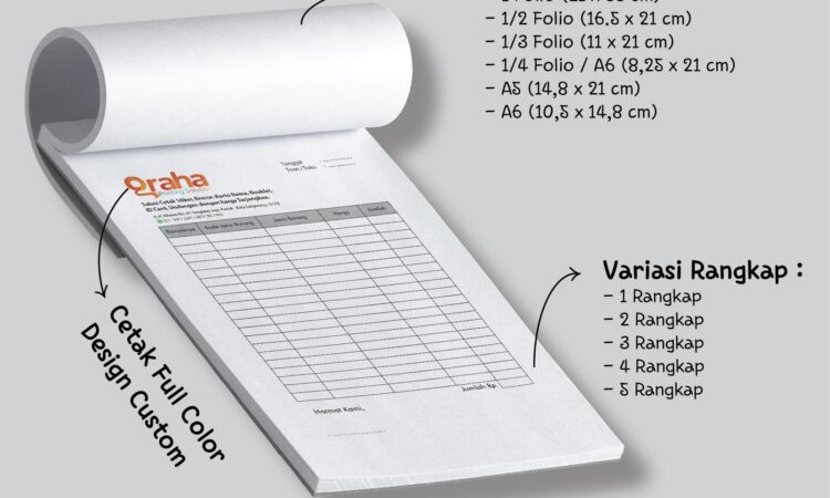 | Warna Cetak | Full Color (Lembar pertama), Hitam Putih (Lembar rangkap) |