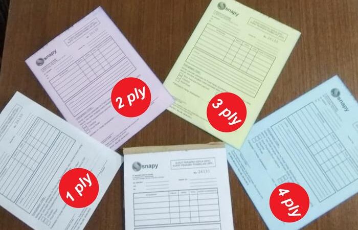 - Ply: Merujuk pada lapisan dalam set kertas NCR. Setiap ‘ply’ adalah satu lapisan yang membentuk satu set kertas berlipat.