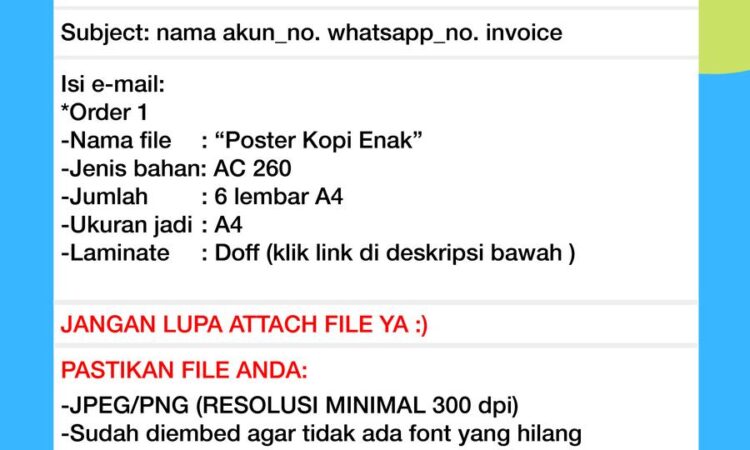 - Repeat order: Hubungi admin dengan menyertakan nomor pesanan baru + nomor pesanan sebelumnya.