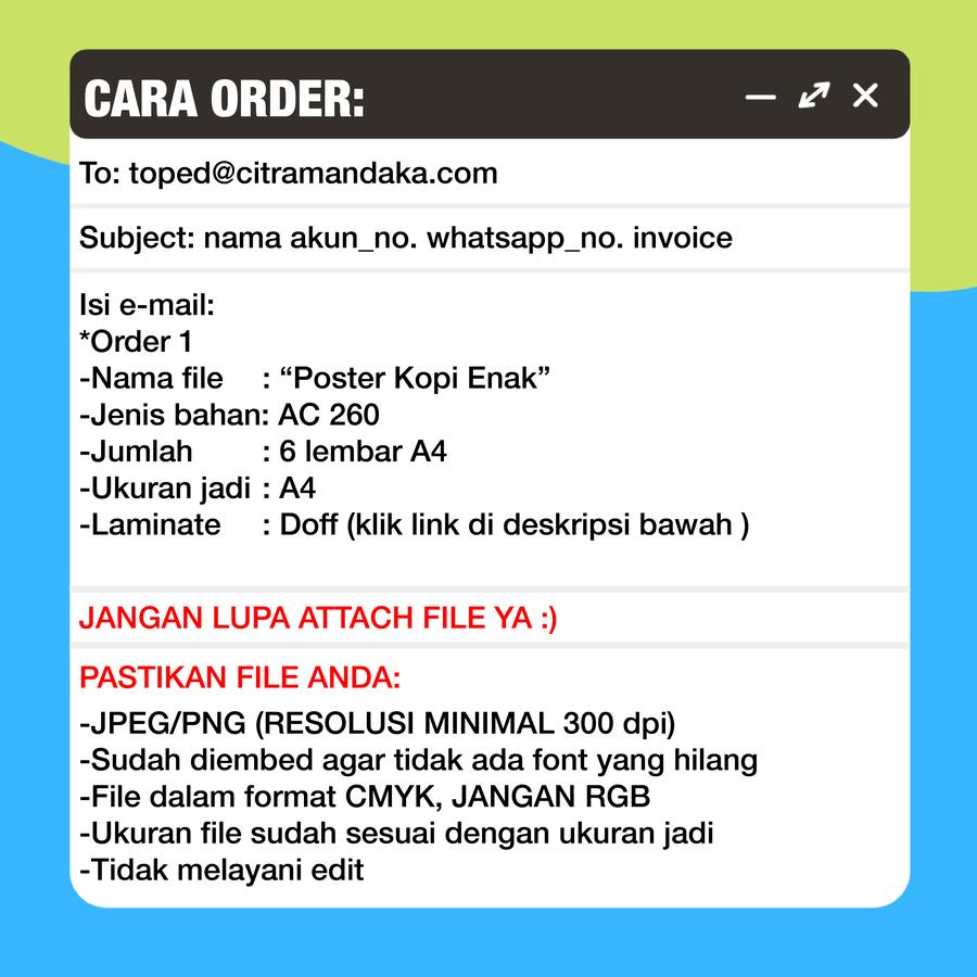 - Repeat order: Hubungi admin dengan menyertakan nomor pesanan baru + nomor pesanan sebelumnya.