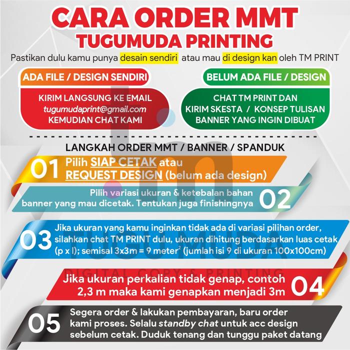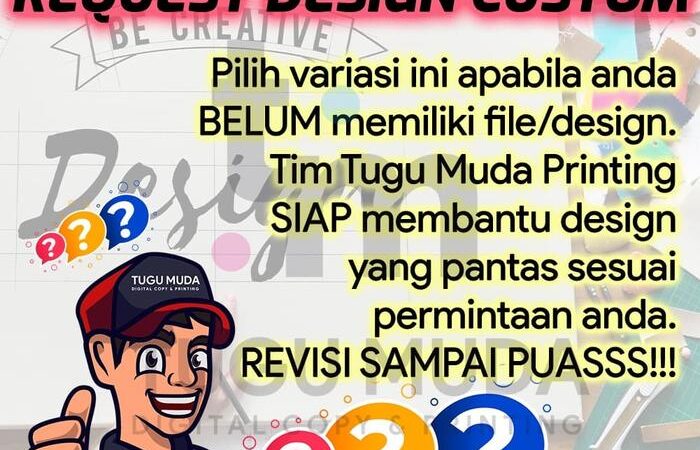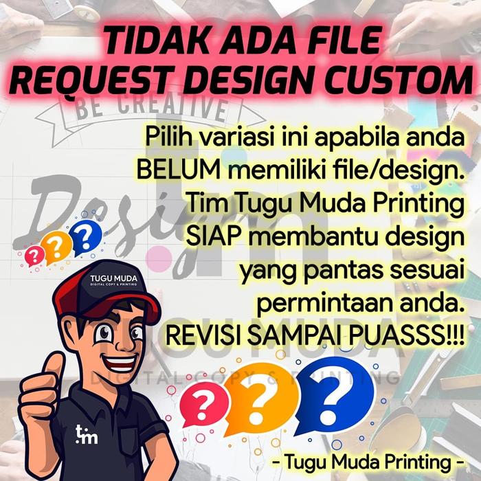 - File belum siap cetak & butuh desain? Mohon beri waktu yang tidak terlalu mepet dengan acara.
