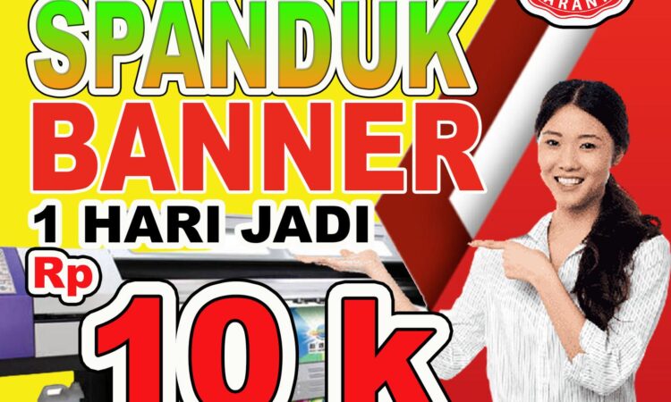 Dapatkan spanduk berkualitas tinggi dengan proses cepat hanya dalam 1 hari. Kami menggunakan bahan Flexi Standar 285gr yang tahan air dan cuaca, menjadikannya solusi sempurna untuk kebutuhan promosi outdoor Anda.