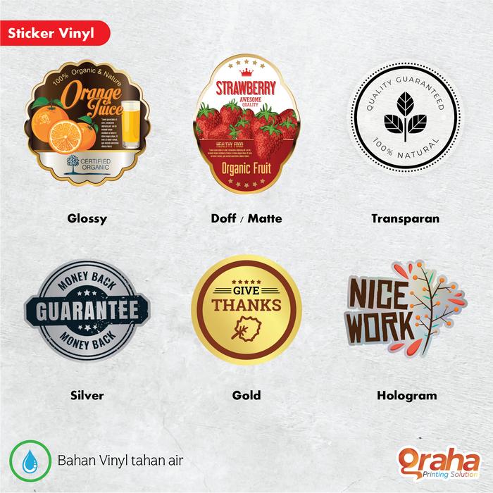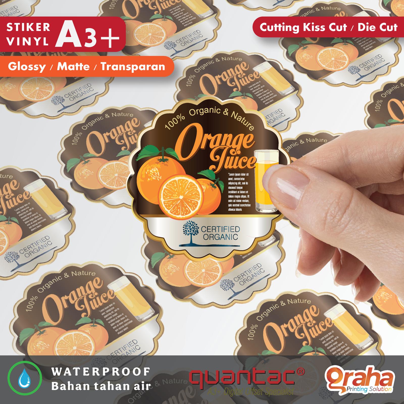 Tinggalkan stiker biasa yang mudah luntur dan terlihat murahan! Saatnya tingkatkan citra brand Anda dengan Stiker Vinyl A3+ premium. Tersedia dalam tiga pilihan finish eksklusif: Glossy yang mengilap dan cerah, Doff yang halus dan elegan, serta Transparan untuk efek tempel tanpa bingkai. Kualitas cetak tinggi resolusi menjamin hasil yang tajam dan detail. Stiker ini 100% tahan air dan sudah termasuk cutting kiss cut, siap ditempel di mana saja untuk berbagai keperluan promosi dan branding.