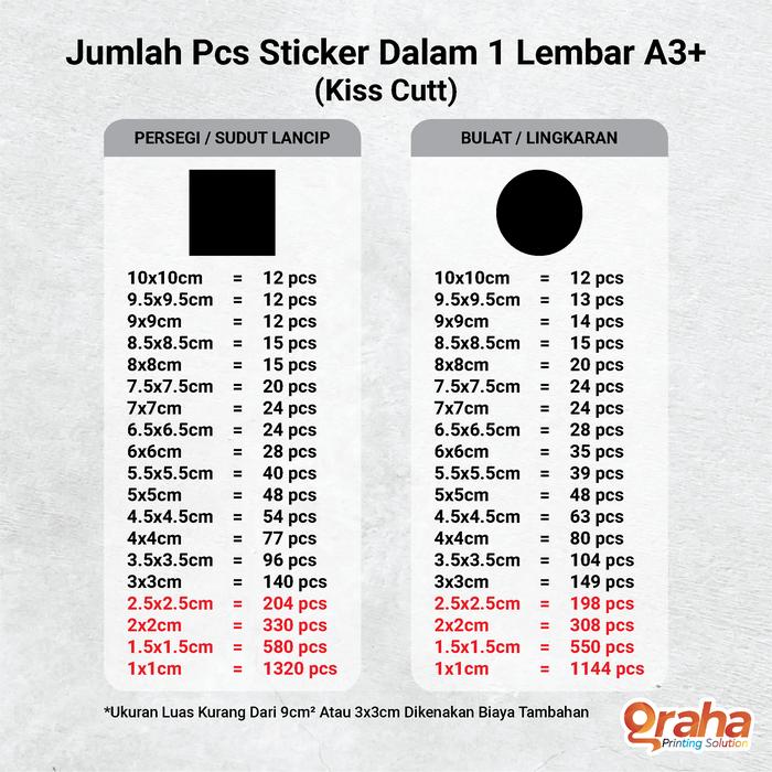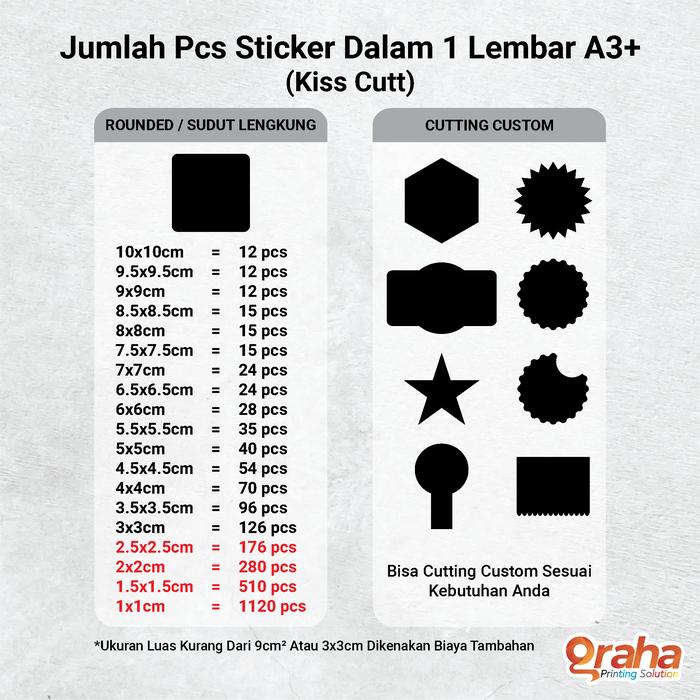 | Finishing | Sudah termasuk cutting Kiss Cut |