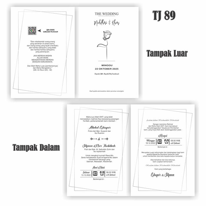 Tampilkan momen spesial Anda dengan undangan eksklusif dari kami. Pilih dari berbagai desain seperti Rustic yang homey, Modern yang minimalis, atau Elegant yang berkelas. Setiap undangan dicetak dengan teknik presisi tinggi di atas kertas BC 150gsm tebal untuk kesan premium dan tahan lama.