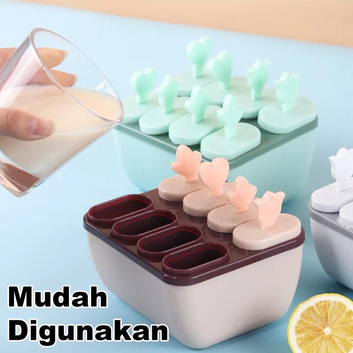 | Desain | Dilengkapi dengan stik es krim yang kokoh dan penutup kedap udara untuk mencegah tumpah. |