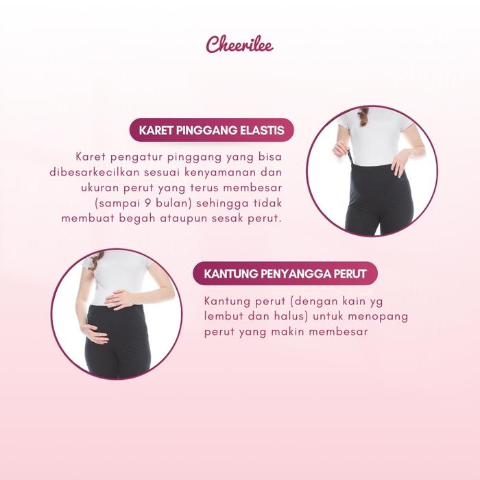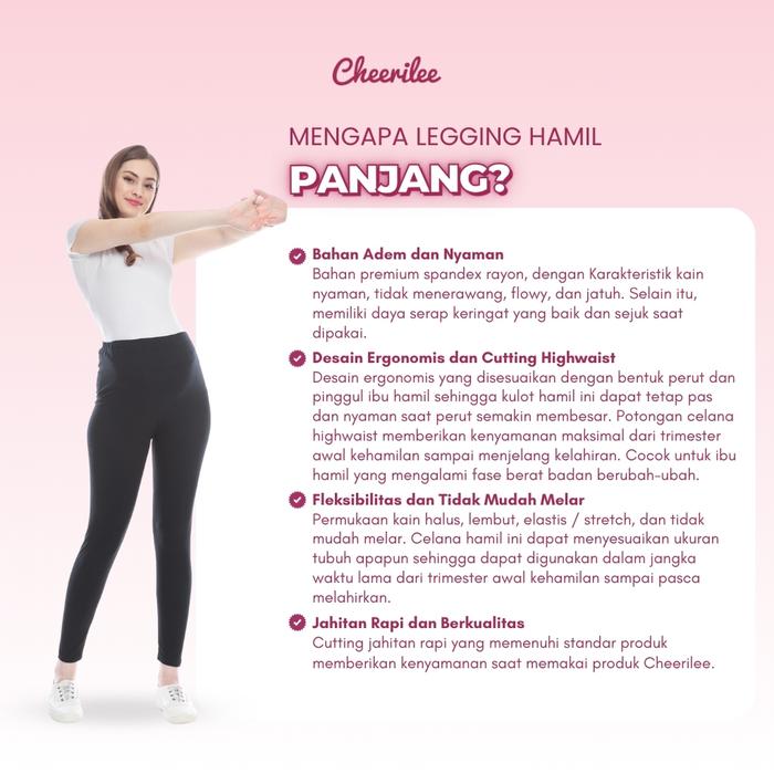 Temukan kenyamanan maksimal selama masa kehamilan dengan Cheerilee Legging Hamil Panjang! Dibuat dari bahan katun spandex rayon yang lembut, adem, dan stretch, legging ini cocok untuk aktivitas sehari-hari tanpa risiko menerawang. Desainnya dilengkapi kantung perut dan adjustment pinggang, sehingga bisa menyesuaikan bentuk tubuh dari trimester awal hingga menjelang persalinan.