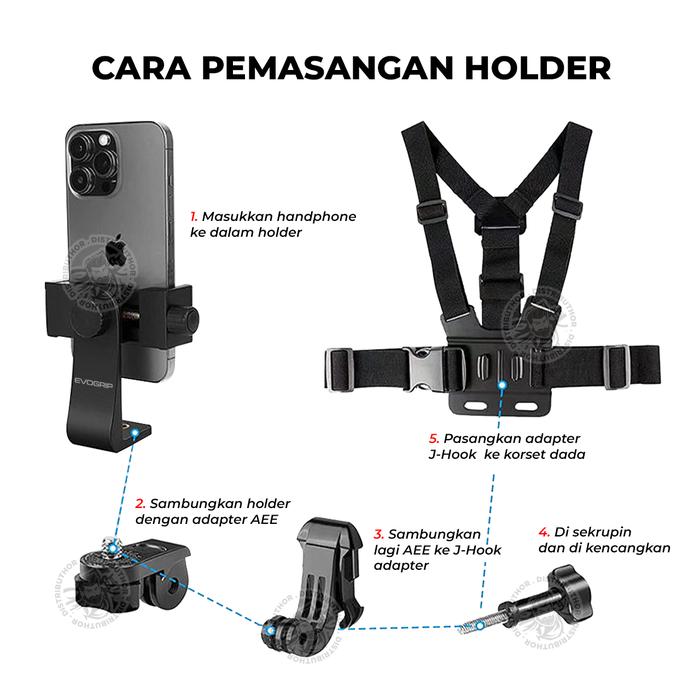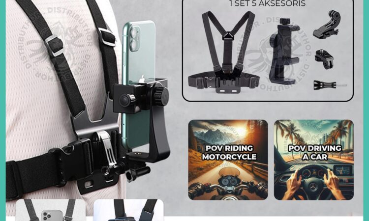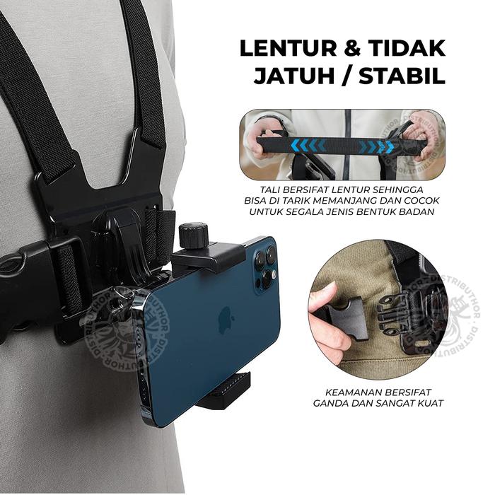 | Kelengkapan Paket | 1x Chest Harness Strap, 1x Phone Holder, 1x Mount Adapter, 1x Base Mount, 1x J Hook, 1x Screw |