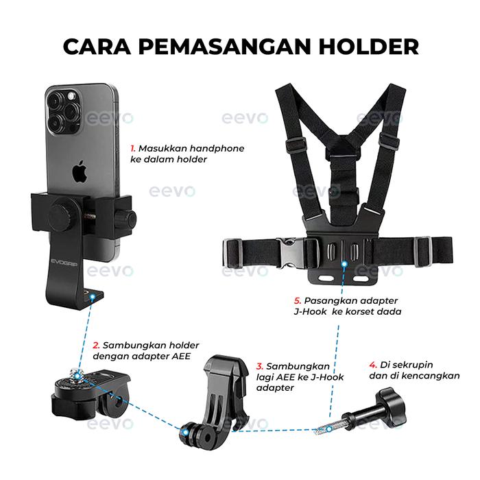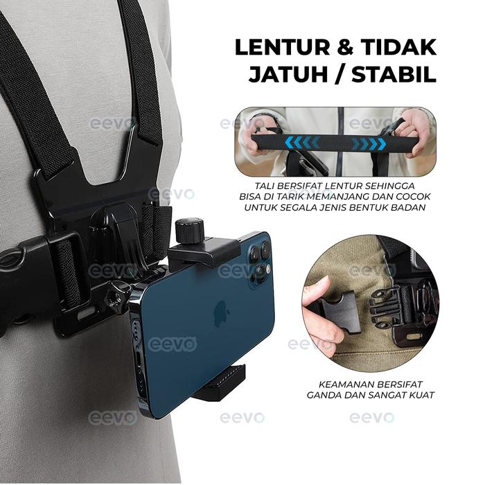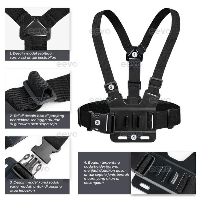 | Kelengkapan | 1 Chest Harness Strap, 1 Phone Holder, 1 Mount Adapter, 1 Base Mount, 1 J Hook, 1 Screw |