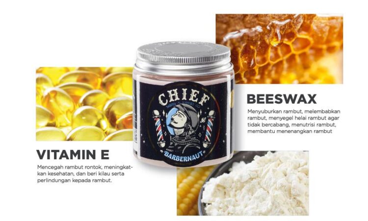 | Bahan Utama | Beeswax dan Vitamin E untuk nutrisi rambut serta kelembaban optimal. |