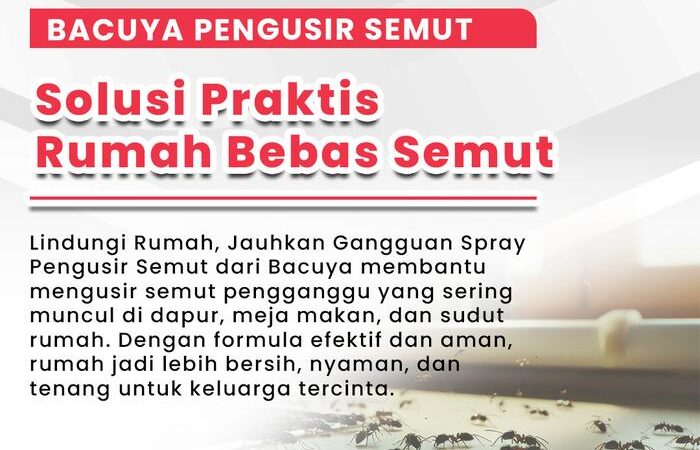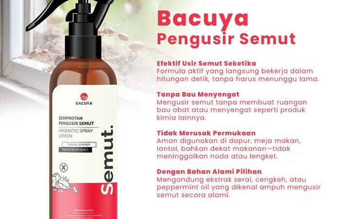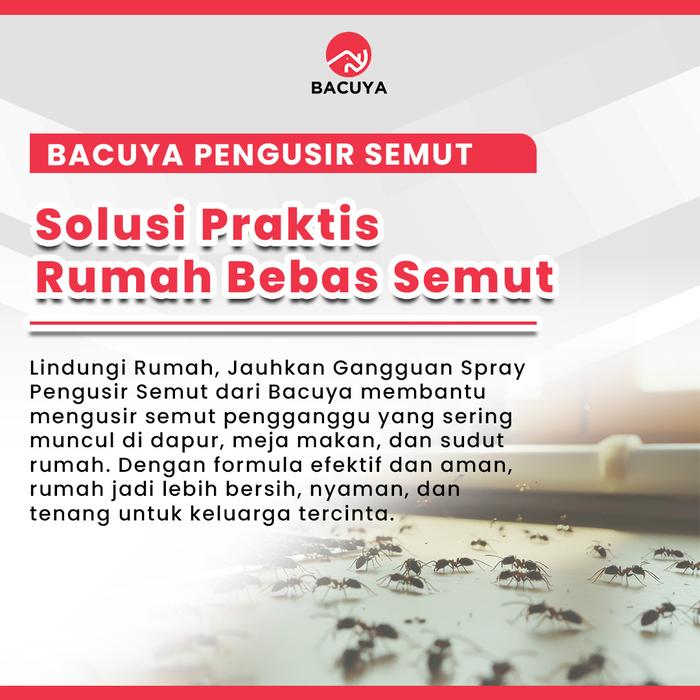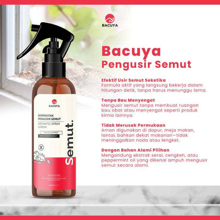 Bacuya Aromatic Spray adalah solusi praktis berbahan alami untuk mengusir semut dan mencegahnya datang kembali. Formulasi khususnya memberikan perlindungan efektif hingga 6 bulan dengan aplikasi rutin. Rumah Anda akan terbebas dari gangguan serangga, lebih nyaman, dan higienis.