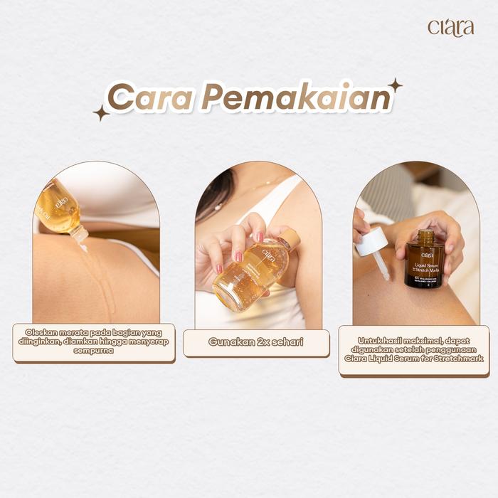 Liquid SerumOleskan pada kulit ber-stretchmark. Gunakan 2 kali sehari setelah mandi. Tunggu hingga menyerap sebelum berpakaian. Gunakan rutin selama 40 hari untuk hasil maksimal.NA18230103996