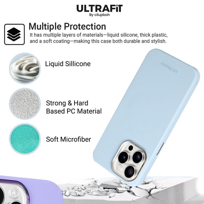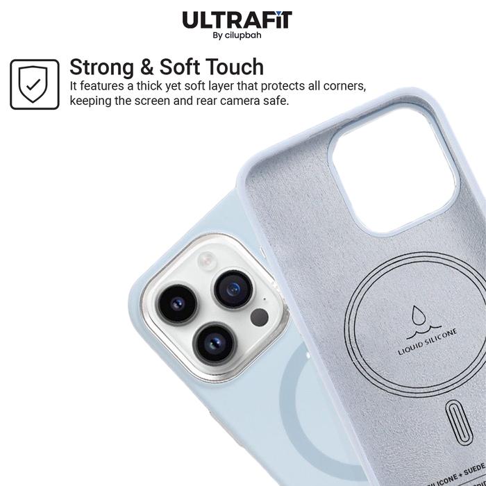 Nikmati pengalaman menggenggam yang premium dengan bahan silikon lembut dan bagian dalam berlapis kain beludru. Case ini tidak hanya melindungi iPhone Anda dari goresan dan benturan, tetapi juga menjaga kebersihannya dengan permukaan anti sidik jari.