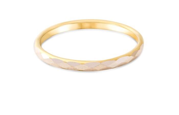 - 10K (10 Karat): Merupakan ukuran kemurnian emas, menunjukkan bahwa cincin ini mengandung 41.7% emas murni. Emas 10K dikenal sebagai emas kadar menengah, lebih keras dan tahan lama dibandingkan emas kadar tinggi, sehingga sangat cocok untuk perhiasan sehari-hari.